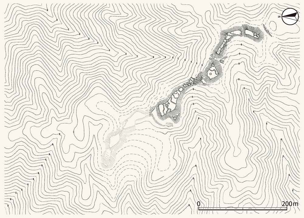 背景図は(新谷和之作図、新谷 2021年)を使用させてもらいました。切岸は着色していません。