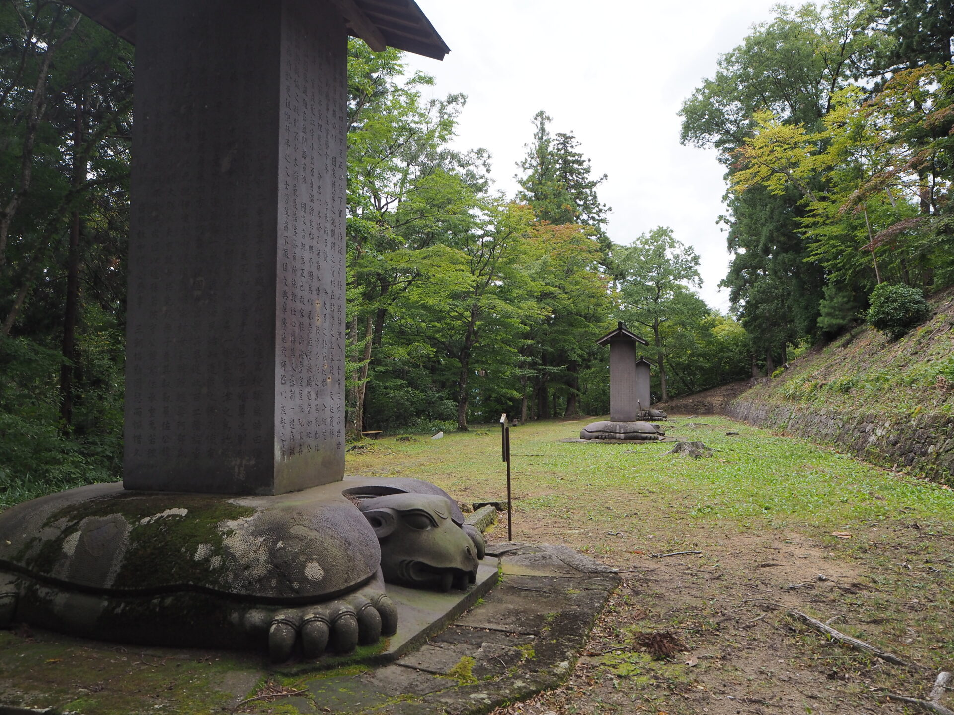 京極家墓所は仏式ですが、深溝松平家は、本光寺にあり仏式を基本としつつ、墓塔には神道、埋葬方法や亀趺碑などに儒式の影響も認められます。