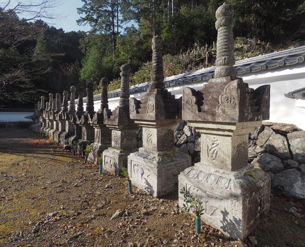 そして、三重塔などの堂宇の建設と、周辺のあった歴代の菩提寺跡などから当主墓をここに集めました(写真10)。その後、支藩の多度津藩主を含め、幕末まで藩主の埋葬が行われ、今現在も京極家による供養が行われているそうです。