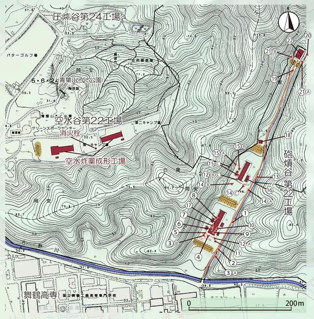 砲熕谷(ほこだに)第22工場です。現状の火薬廠跡の中心的なエリアです。