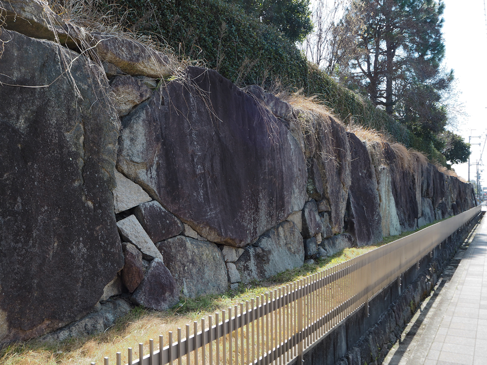 A類は、朝倉館の土塁内側(写真2)、中の御殿南石塁などで、武家屋敷・町屋の土塀石垣(写真3)もほとんどが本類です。